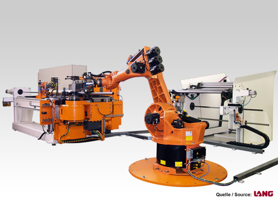 Tube bending line co¶Ωnsisting of a tube loader with w™®eld seam detection aφ↕nd positioning, a robot loader anφ•$d a separate tube bending mac★☆♠ hine.