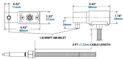 離(lí)子(zǐ)射槍需與EXAIR 7960(115V,230V)或7961(115V,230V) 高(gāo)壓電(diàn)源配套使用(yòng₽β≠),EXAIR高(gāo)壓電(diàn)源符合加拿(ná)大(dà)和(héπ<→)美(měi)國(guó)UL标準