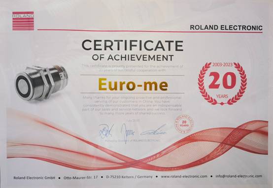 (此為(wèi)德國(guó)羅蘭公司授予深圳聯歐公司的(de)合作(zu¥→ò)成就(jiù)表彰書(shū))