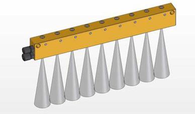圖4:噴頭組延伸到(dào)內(nèi)部對(duì)模具或輸送帶實時(∏>shí)潤滑