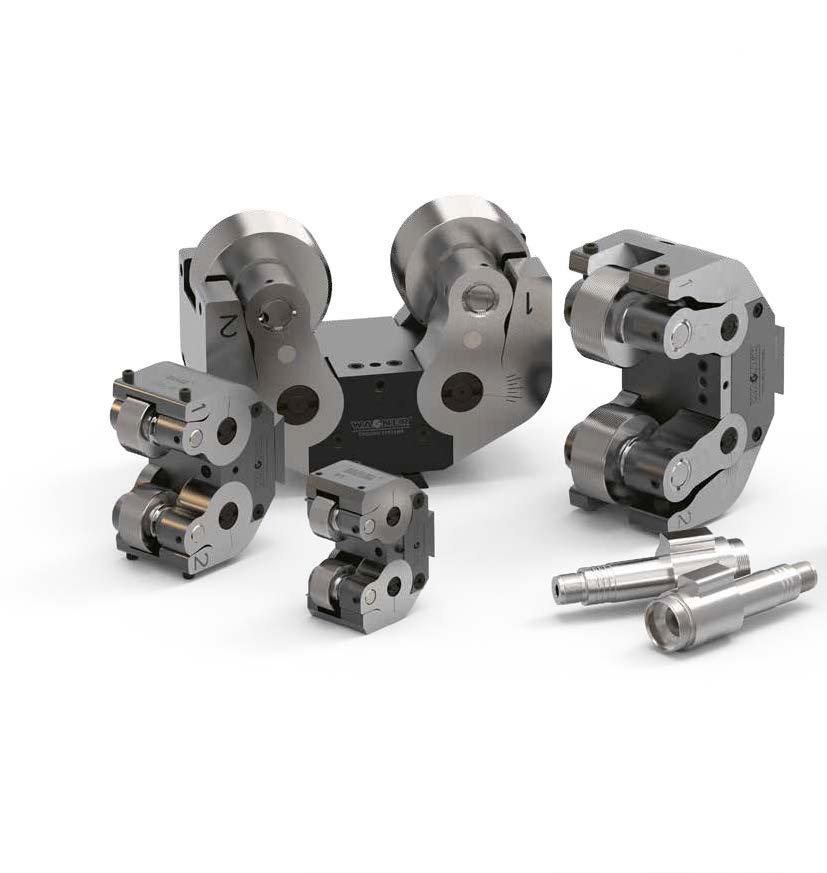 WAGNER 開(kāi)發的(de)軸向滾壓頭模塊化(huà§≈)系統配備有(yǒu)可(kě)更換軋輥架套件(jiàn),≥ 涵蓋了(le)一(yī)個(gè)刀(dāo)具≥♥α的(de)整個(gè)加工(gōng)範圍。可(•₽kě)更換軋輥确保了(le)能(néng)快(kuài)速方便↑✔ <地(dì)滾壓所有(yǒu)常規螺紋。