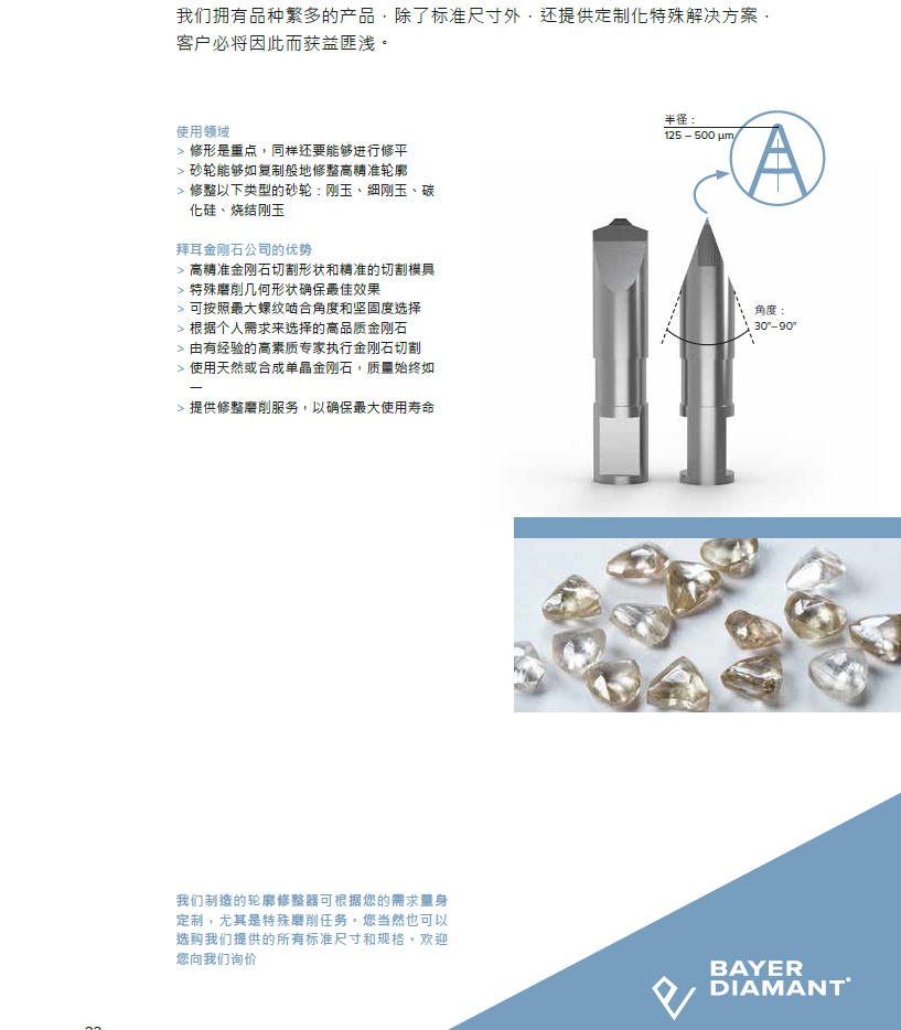 此外(wài),拜耳金(jīn)剛石公司 (Bayer D✘∑α♦iamant) 的(de)産品品種包含了(le)高Ω×←÷(gāo)精度雕刻金(jīn)剛石、接觸