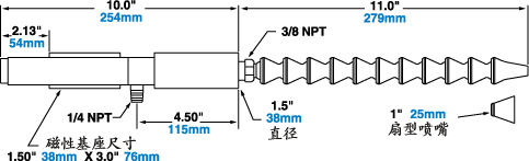 強力冷(lěng)卻槍系統(雙頭)包含5030冷(lěng)卻槍(3γε0SCFM/850SLPM),雙頭萬向管套間(jiā" ¶n),1/4"(6MM)錐型噴嘴,1”(25MM)扇型噴嘴和(hé)自(zì)動除水(shuǐ)過 '濾器(qì). | |
