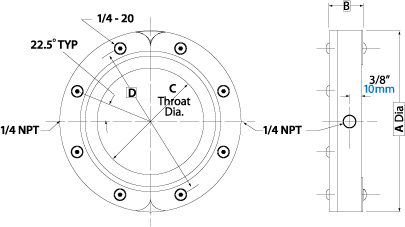 壓縮空(kōng)氣入口: 每個(gè)超級氣流擦洗器(qì)在半圓處均有(yǒu)一(yī)個(gè)壓£$Ω♥縮空(kōng)氣入口。內(nèi)徑小(xiǎo)于4" (102mm) 的(de)超級氣流擦洗器(qì)則帶一(yī)個(gè)不(§±<bù)鏽鋼編織網管以同時(shí)給另一(yī)端供氣。 內(nèi)徑大(dà)于等于 9" (229mm) 的(de)超級氣流擦洗器(qì)則在每個(gè)半圓處都(dōu)各有(yǒu¥÷)一(yī)個(gè)進氣口,壓縮空(kōng)氣需同時(↕€÷shí)直接導入兩個(gè)進氣口以确認氣流₩✘©均衡。