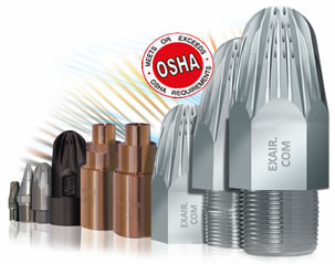 EXAIR高(gāo)壓噴嘴和(hé)射嘴是(shì)λ♣≥☆以壓縮空(kōng)氣為(wèi)動力、解決吹洗應用(y∞↔Ωòng)場(chǎng)合耗氣量大(dà)噪音(yīn)高(gāo)的(d σ←e)簡單方法,其氣流增強率最高(gāo)可(kě)達25倍。與開(kāi)口式銅管或導管相(xiàng)比,可≠'↓(kě)節約80%壓縮空(kōng)氣。因為(wèi)耗氣量少(shǎo),從(cón✔¶∑g)而噪音(yīn)也(yě)低(dī),一(y>×↓•ī)般情況下(xià),噪音(yīn)比ε∑其他(tā)類似設備低(dī)10分(fēn)貝。所有(yǒu)噴嘴和(hé)射嘴都(dōα✔×αu)符合OSHA的(de)相(xiàng)關要(yào)求。