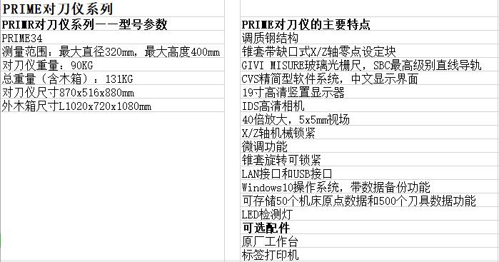 Prime34對(duì)刀(dāo)儀系列參數(shù):ε& |